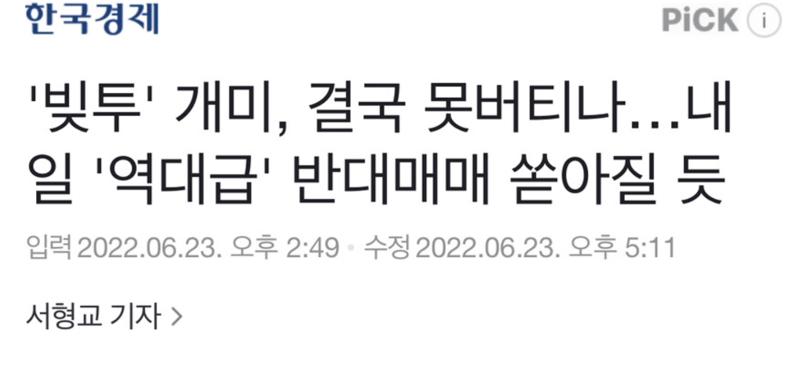 요즘 높은 물가 상승률과 경기 침체 우려 탓에 주식 시장 하락세가 장난이 아닙니다. 그런데 주가 반등을 기대하며 신용 거래나 미수금으로 빚을 내어 투자한 개인들이 주식 강제처분 즉, 반대매매에 내몰리고 있다고 합니다. 가장 최근에 돈을 갚지 못해 주식을 강제 처분당한 '반대매매' 금액은 120억 원에서 316억으로 세 배 수준으로 급증했다고 합니다.